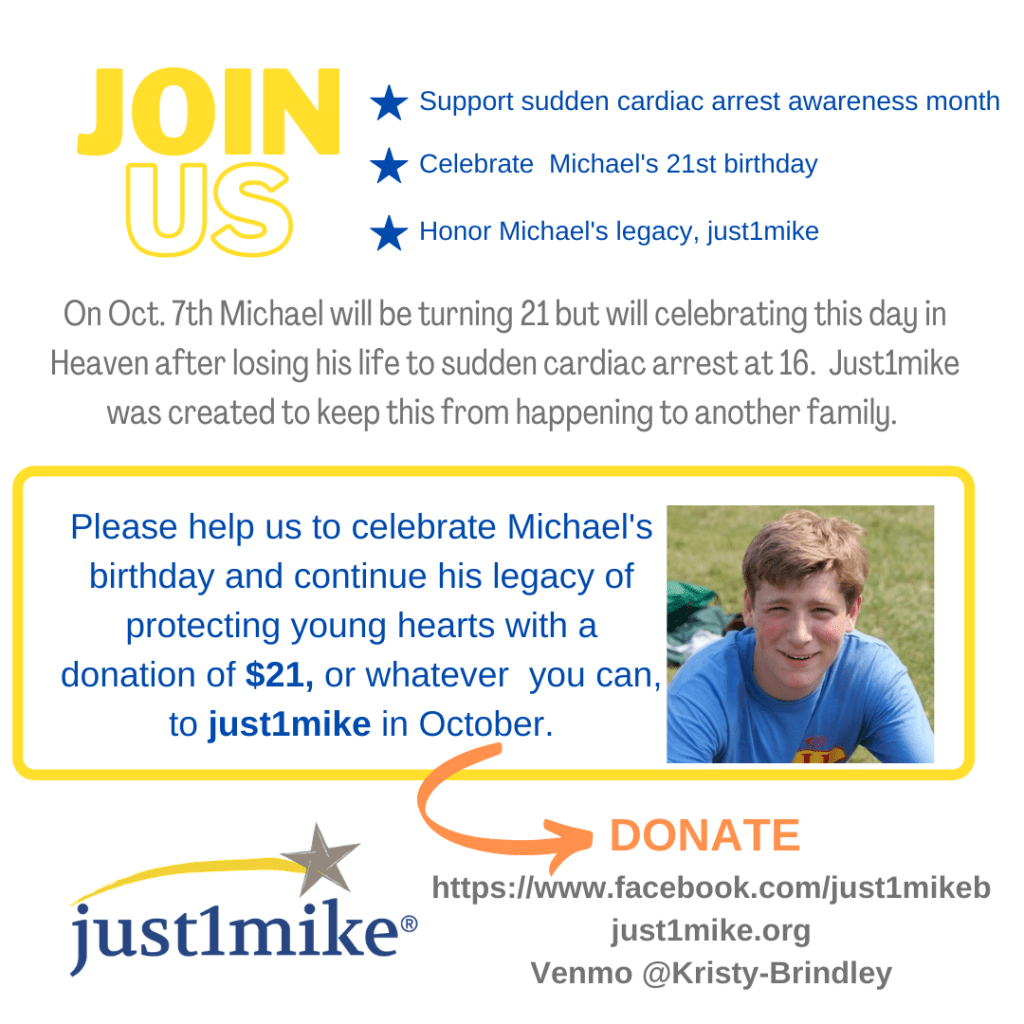 While only on this earth for 16 years and 8 months, Michael touched many lives in so many wonderful ways. Our family is committed to honoring Michael’s beautiful life, his passions and continuing the kindness he showed to others through just1mike, a 501c3 non-profit foundation. Lovingly named after Michael’s blog, just1mike.com , our foundation will work to raise awareness and fund testing for the prevention of sudden cardiac death in teens as well as provide AED equipment, training and emergency preparedness plans for a sudden cardiac event. We will also work to offer scholarship opportunities in Michael’s name.